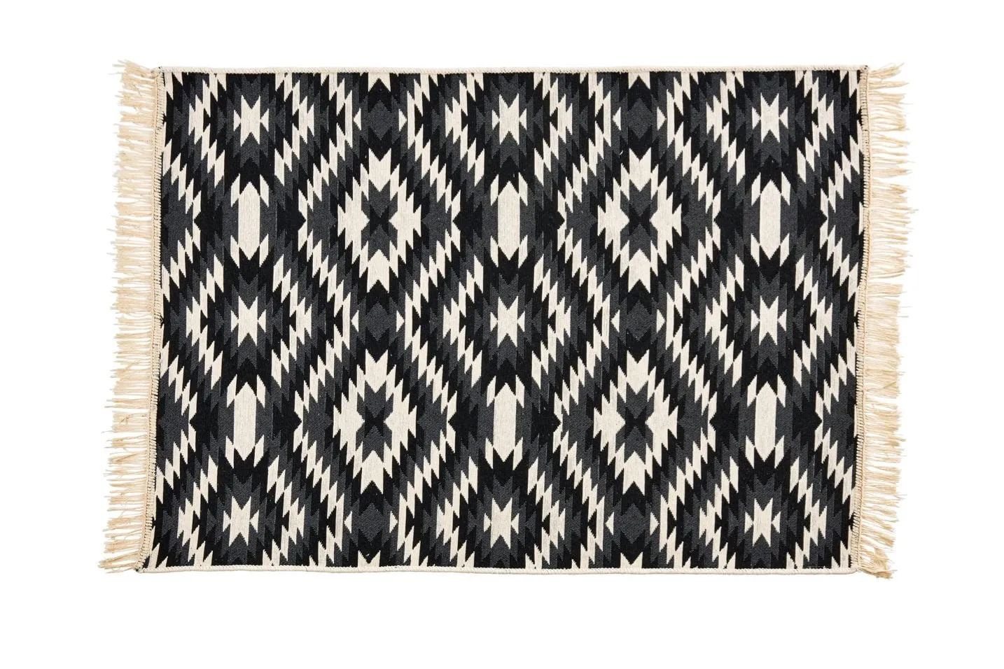Vielseitiger Teppich aus robustem, strapazierfähigen Flachgewebe mit stylischen Fransen, der in allen Wohnbereichen tolle Akzente setzt. Auch im Bad sorgt er für eine kuschelige Atmospäre. Aus natürlicher Baumwolle und hochwertigem Polyester gefertigt, ist der Teppich besonders pflegeleicht. Er kann bei 30°C in der Waschmaschine gewaschen werden.