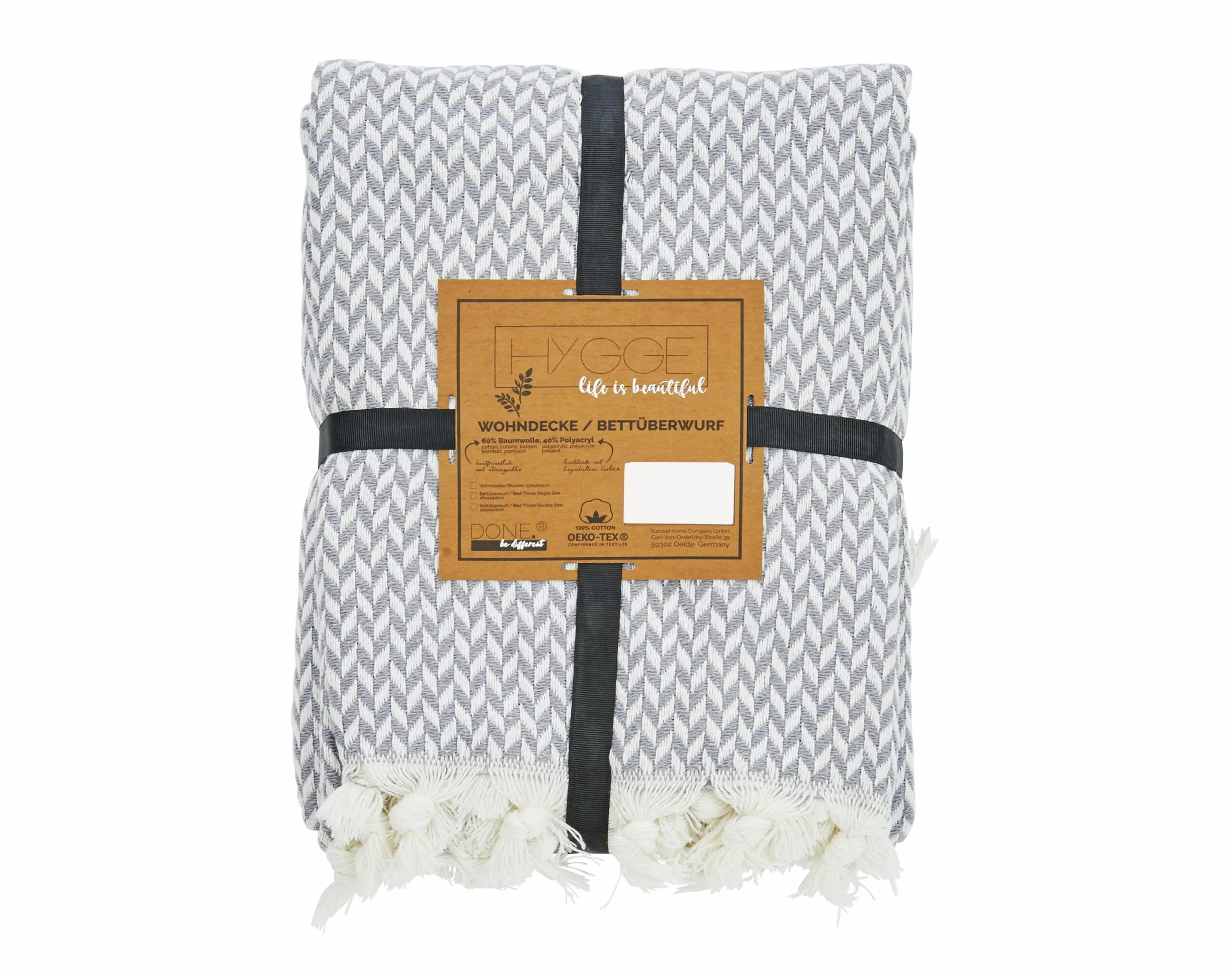 Wohndecke mit tollen, geknoteten Fransen und schickem Fischgräten-Muster für kuschelige Momente. Sie verleiht deinem Zuhause Stil, Wärme und Gemütlichkeit. Die Decke ist super weich und wärmend aufgrund des hohen Anteils an hochwertigem Polyacryl. Die natürliche Baumwolle macht die Decke atmungsaktiv und hautfreundlich.