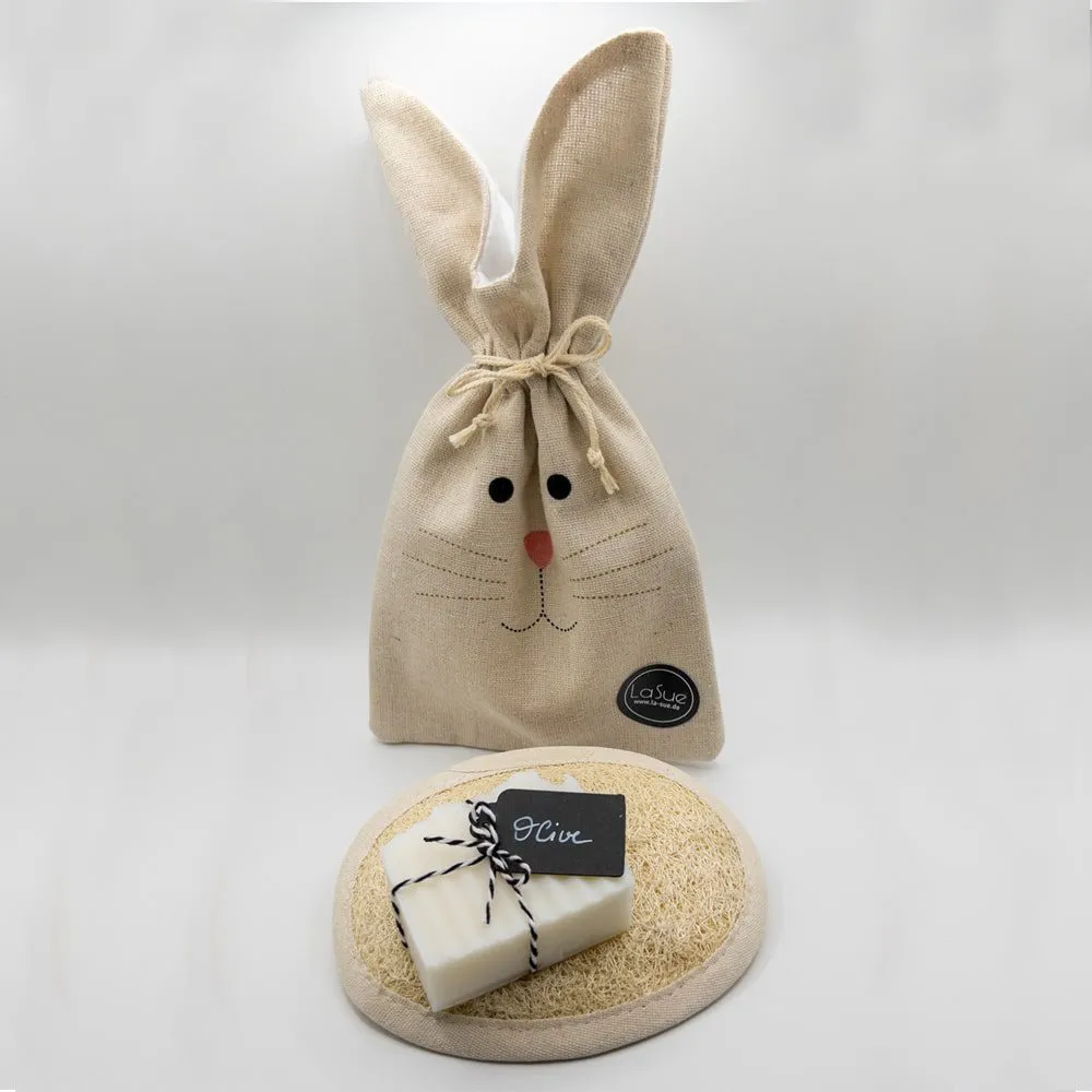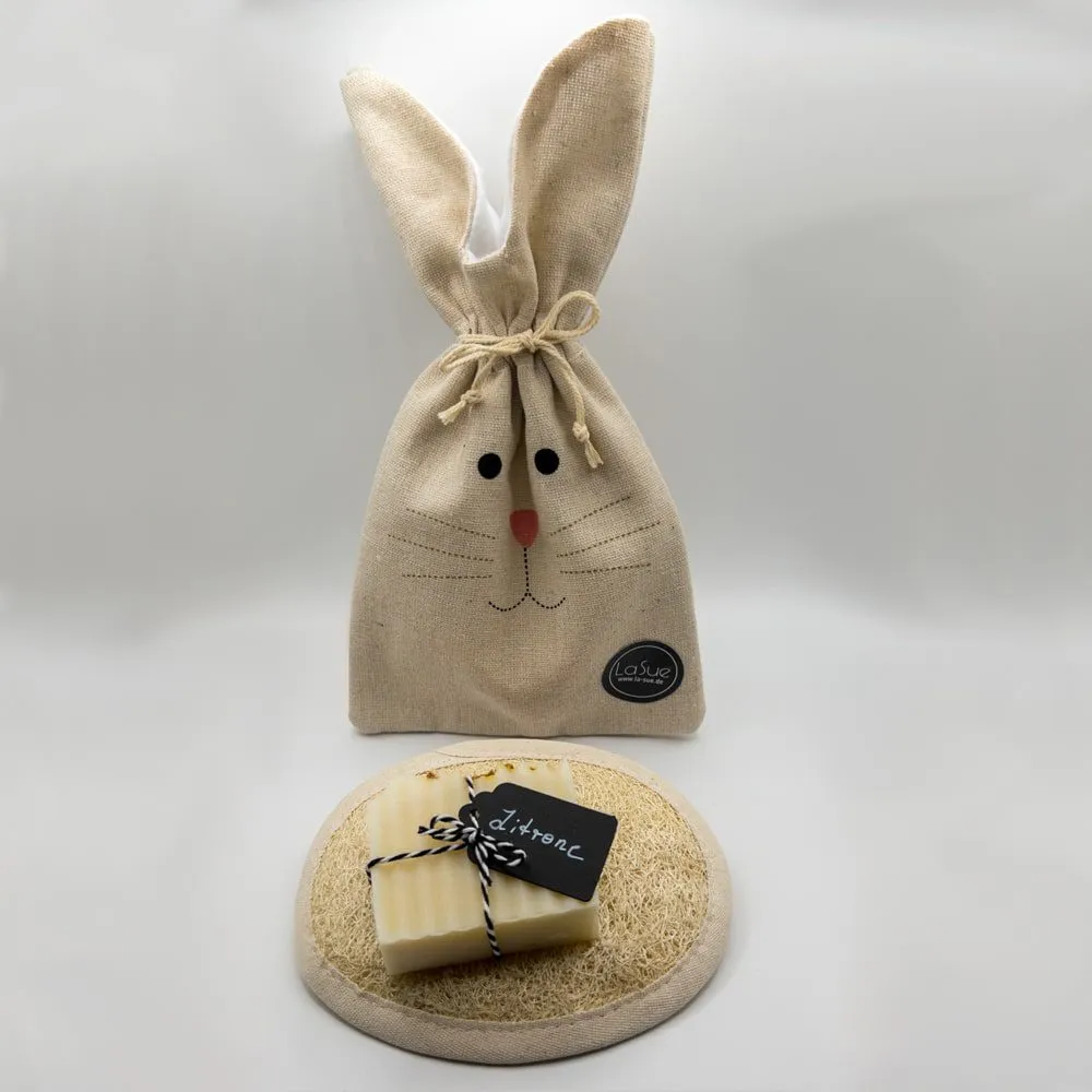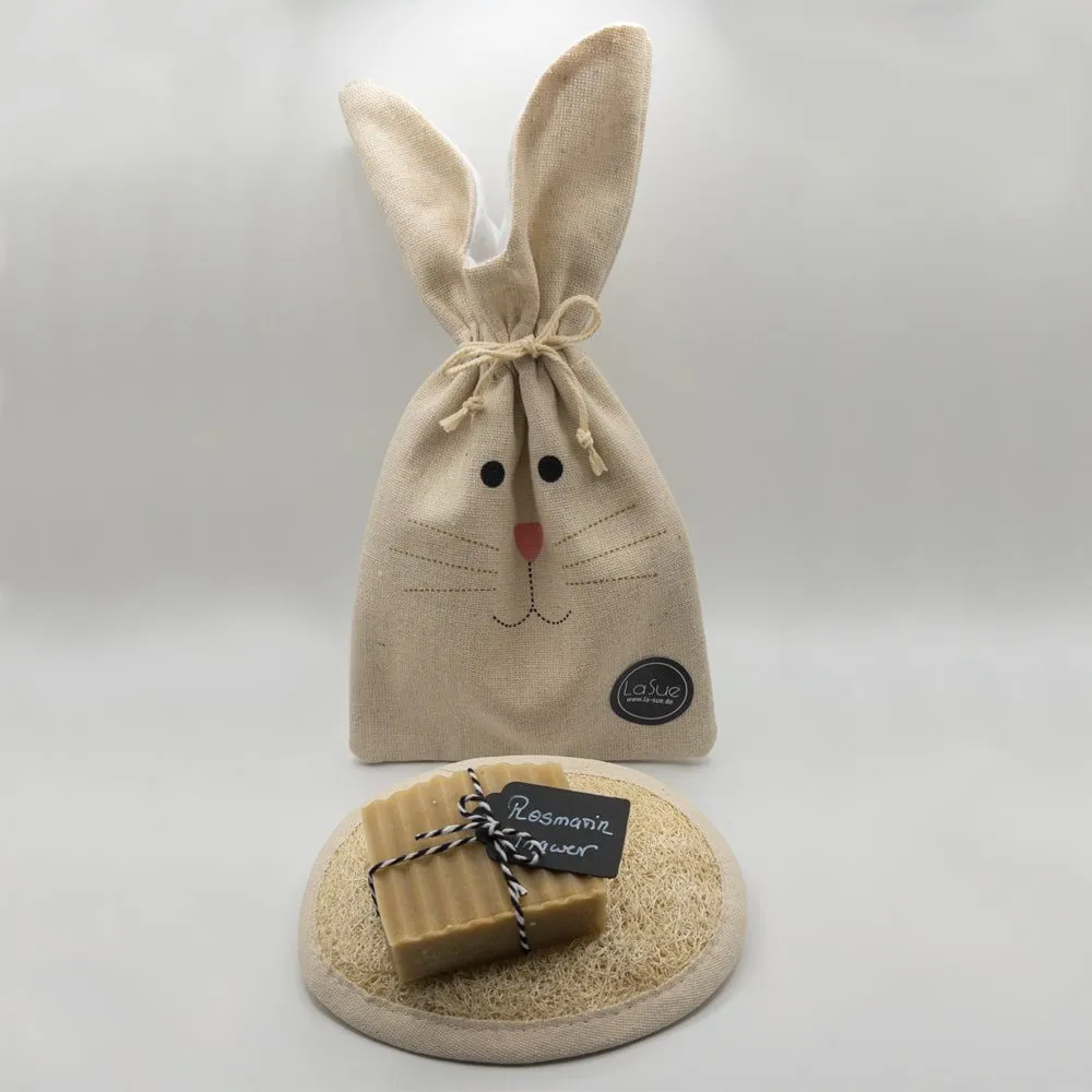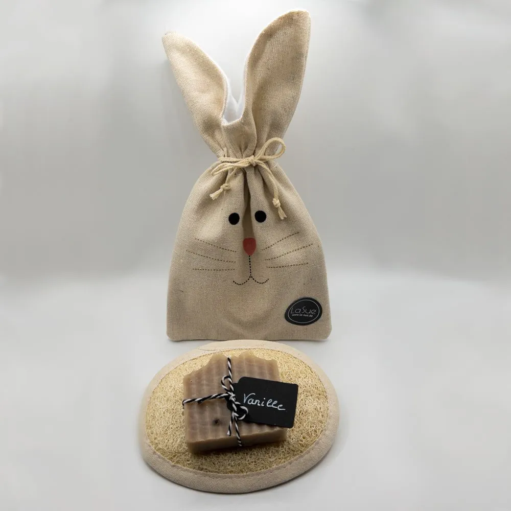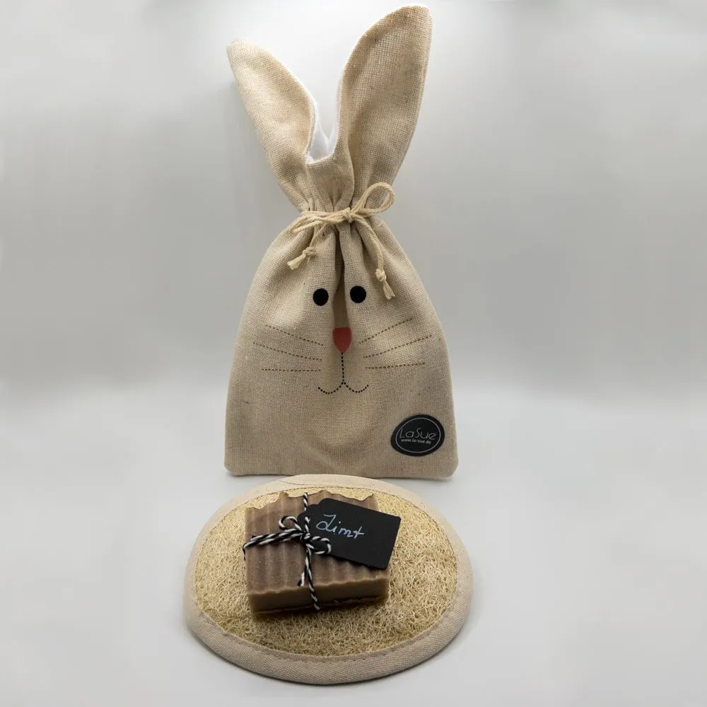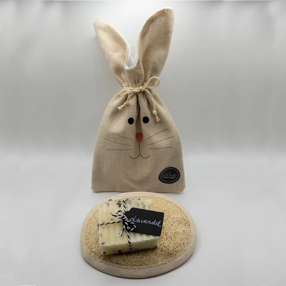 Das La Sue Osterset besteht aus einem Luffaschwamm und einer Seife deiner Wahl aus unserem Sortiment. Diese werden in einem hübschen Leinensäckchen verpackt geliefert. Auch zu Ostern eine schöne Idee, denn Hygiene ist und bleibt wichtig.